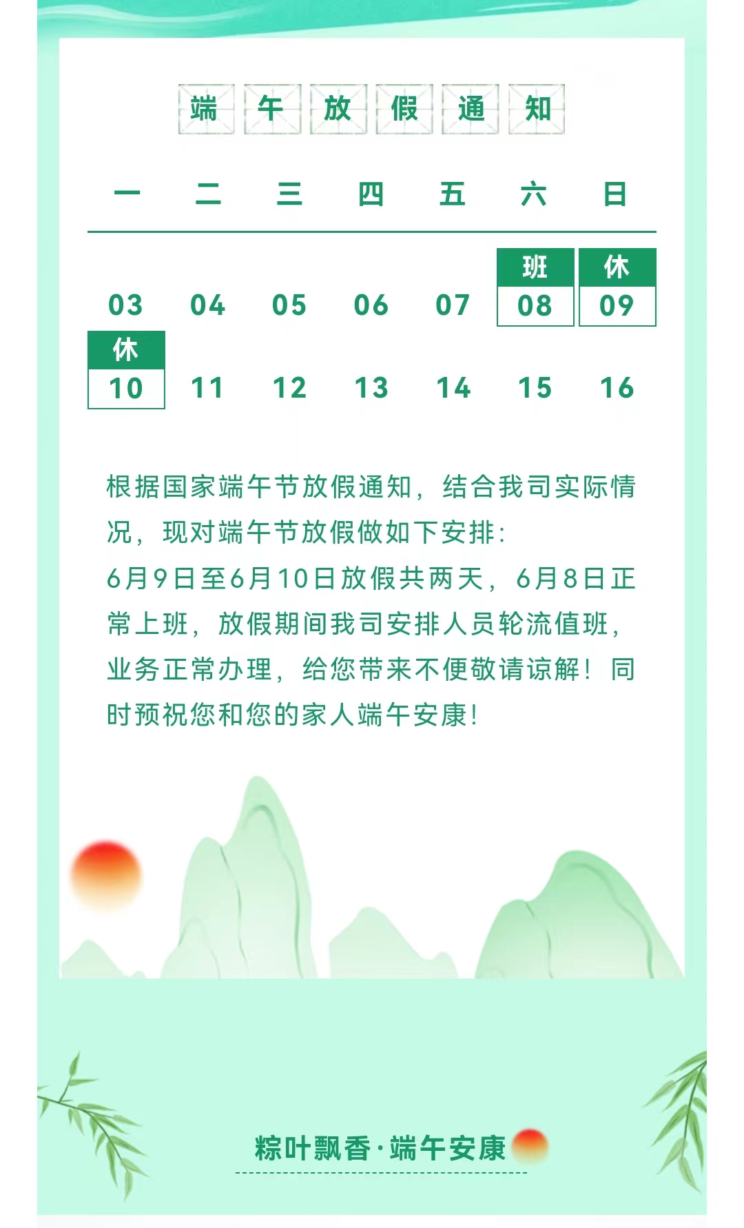 端午節放假通知!